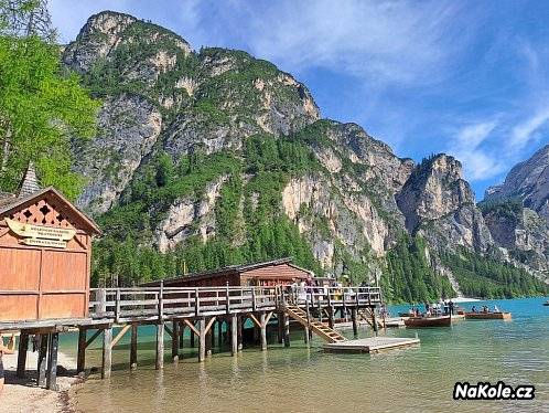 3. den: Autobusem s naloženými koly k alpskému jezeru Misurina (1754 m), ve kterém se odráží nejčastější symbol Dolomit Tre Cime - skupina skalních štítů. Odtud na kolech přes průsmyk Tre Croci sjezd do Cortiny d´Ampezzo - procházka horským a olympijským městem. Táhlé stoupání s následným sjezdem k Dürrenskému jezeru a kolem Toblachského jezera zpět na ubytování.